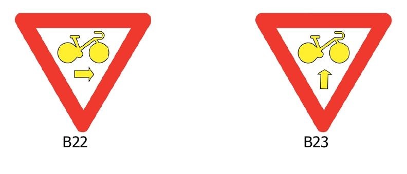 - Het toepassingsgebied van borden B22 en B23 wordt uitgebreid tot speed pedelecs