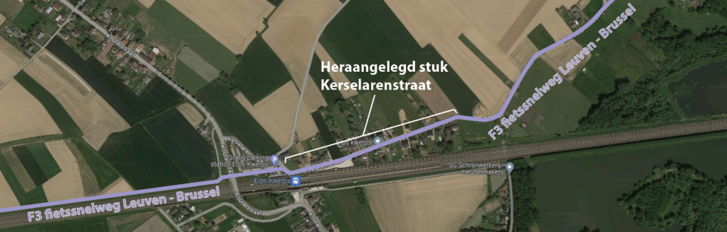 Ook de Kerselarenstraat te Erps-Kwerps (Kortenberg) maakt deel uit van de populaire fietssnelweg F3 Leuven – Brussel.