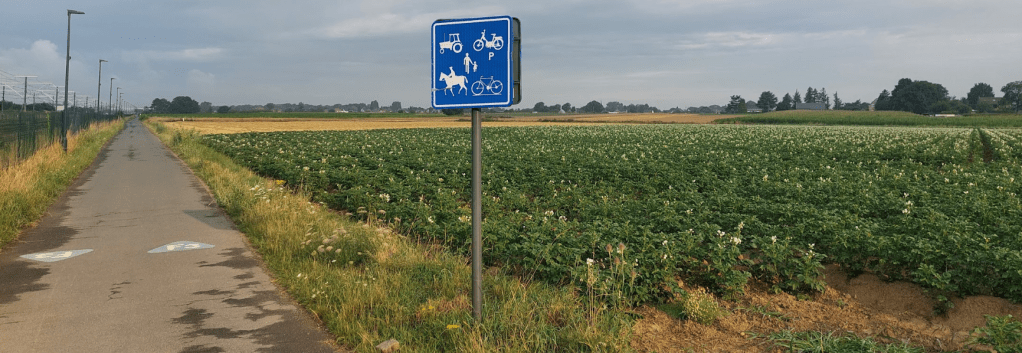Hierbij wel de bemerking dat snelle fietsers in principe in overtreding zijn tussen Kouterstraat en Everbergstraat. Hier staat namelijk F99 bebording, bedoeld om de sporadische dienstvoertuigen en tractors alhier een snelheidsbegrenzing van 30km/u op te leggen. Deze begrenzing telt echter voor àlle voertuigen, inclusief fietsers. Enkel de speed pedelec fietser zou er beboet kunnen worden, want het is de enige met een kentekenplaat. Deze ‘collateral damage’ is onbedoeld ge-evolueerd uit een wetsaanpassing in 2014, toen van speed pedelecs nog geen sprake was.