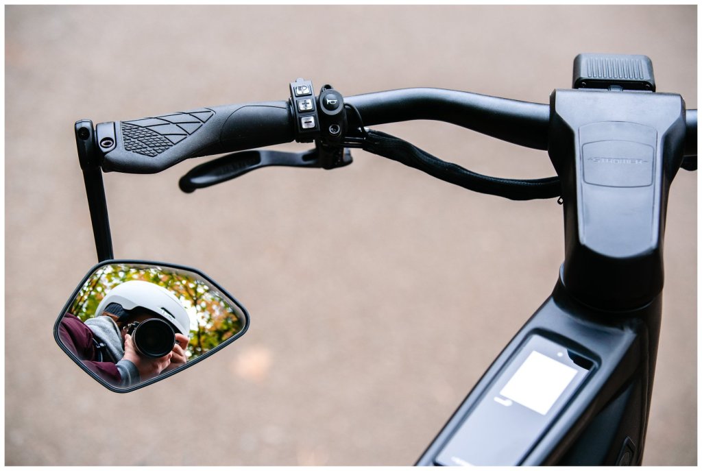 Een spiegel naast je stuur maakt je fiets breder en geraakt gemakkelijk ontregeld bij licht contact met objecten, bijvoorbeeld tijdens het wegzetten van je fiets. Een spiegel die onder je stuur geplaatst is, kent deze nadelen niet. De mogelijkheid om een onderbouw spiegel te gebruiken (bijvoorbeeld Ergotec M-99) hangt wel een beetje af van je zithouding en postuur.