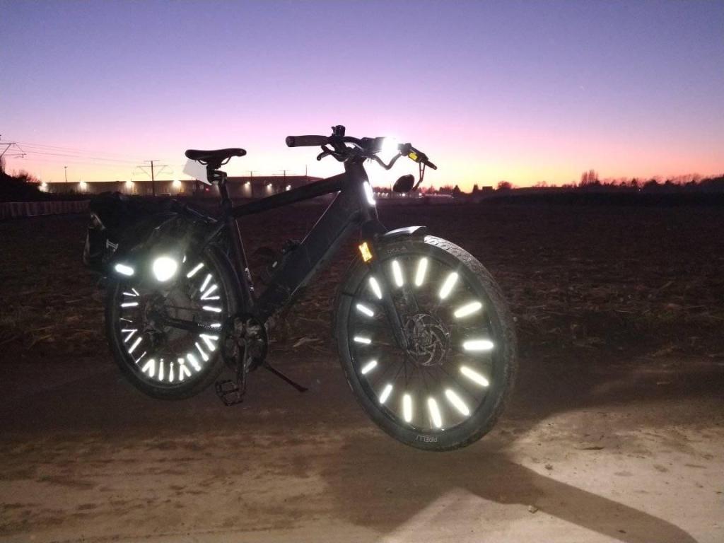 Conforme speed pedelecs zijn goed zichtbaar, maar het kan altijd nog net iets beter. Voor een vijftal euro kan je een heleboel spaakreflectoren kopen, die je simpel om je spaken klikt. Het zorgt voor een zeer goede zijdelingse zichtbaarheid voor aankomende voertuigen, zonder dat je gekleed hoeft te gaan als een dokwerker in een containerterminal. Let op: ze reflecteren licht, maar geven geen licht in het donker. Ook reinig je ze best af en toe. Modder vermindert de reflectie.